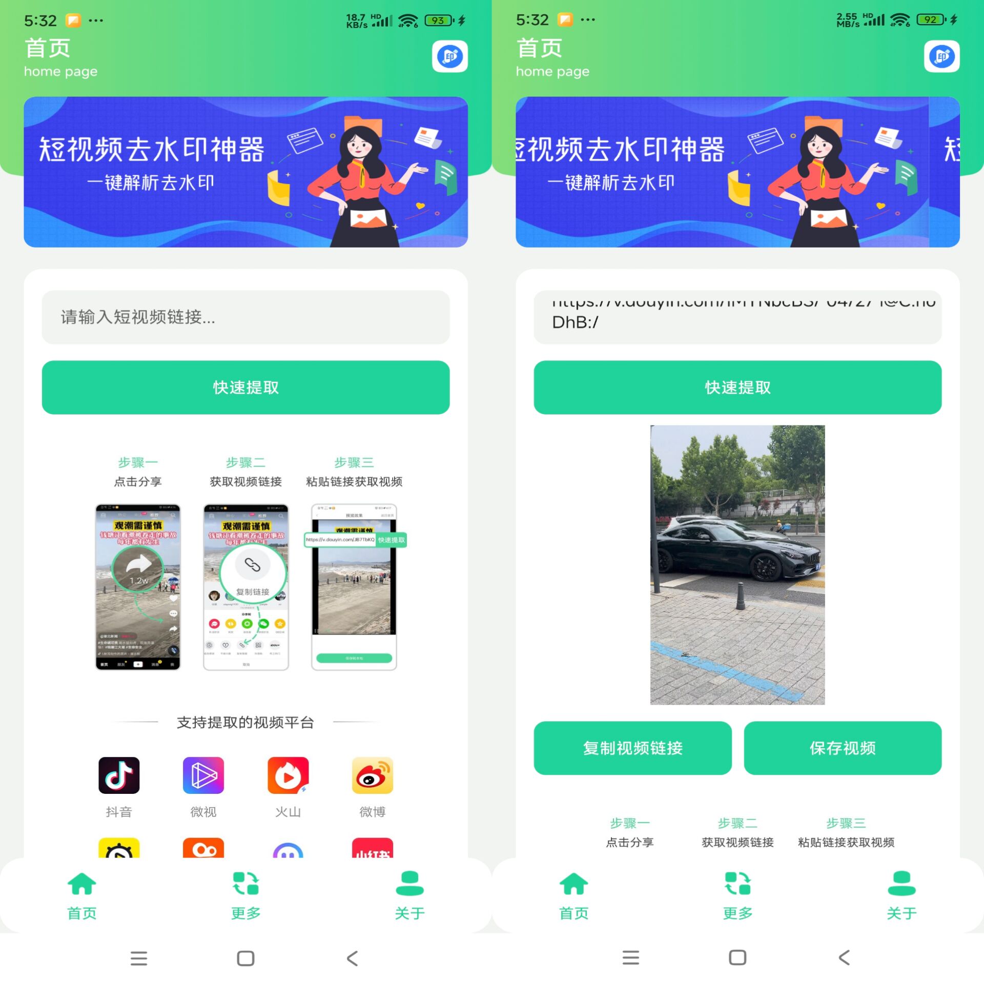 一款短视频水印去除工具,软件界面简洁操作简单,只需复制短视频链接即可一键提取多平台无水印视频,简单好用的视频去水印工具。