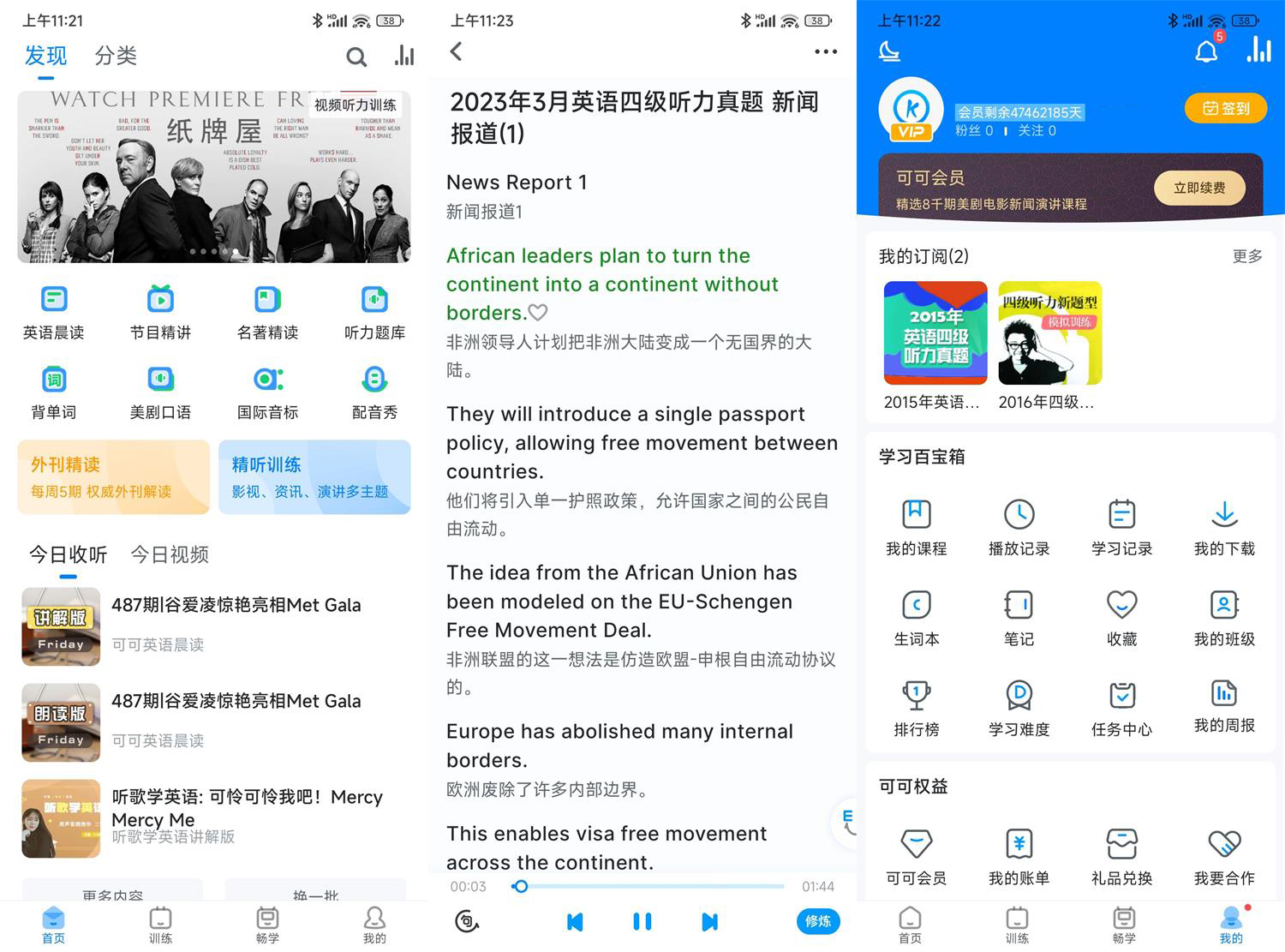 可可英语年轻人的英语学习平台,五星好评如潮,可以满足您英语听说能力提升、单词背诵等方面学习需求。软件特色英语晨读、视频精听、趣味配音,海量内容可离线收听,很省心的练听力应用。