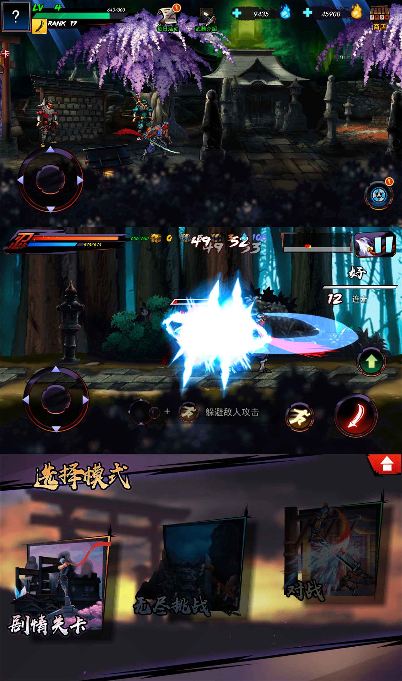 忍者传说是一款系统丰富的忍者题材格斗游戏,游戏摒弃了其他格斗手游技能“一键释放”的“傻瓜式作”,通过武器的练度的长,来解锁不的招式从而完各种连招。(金钱逆增长)