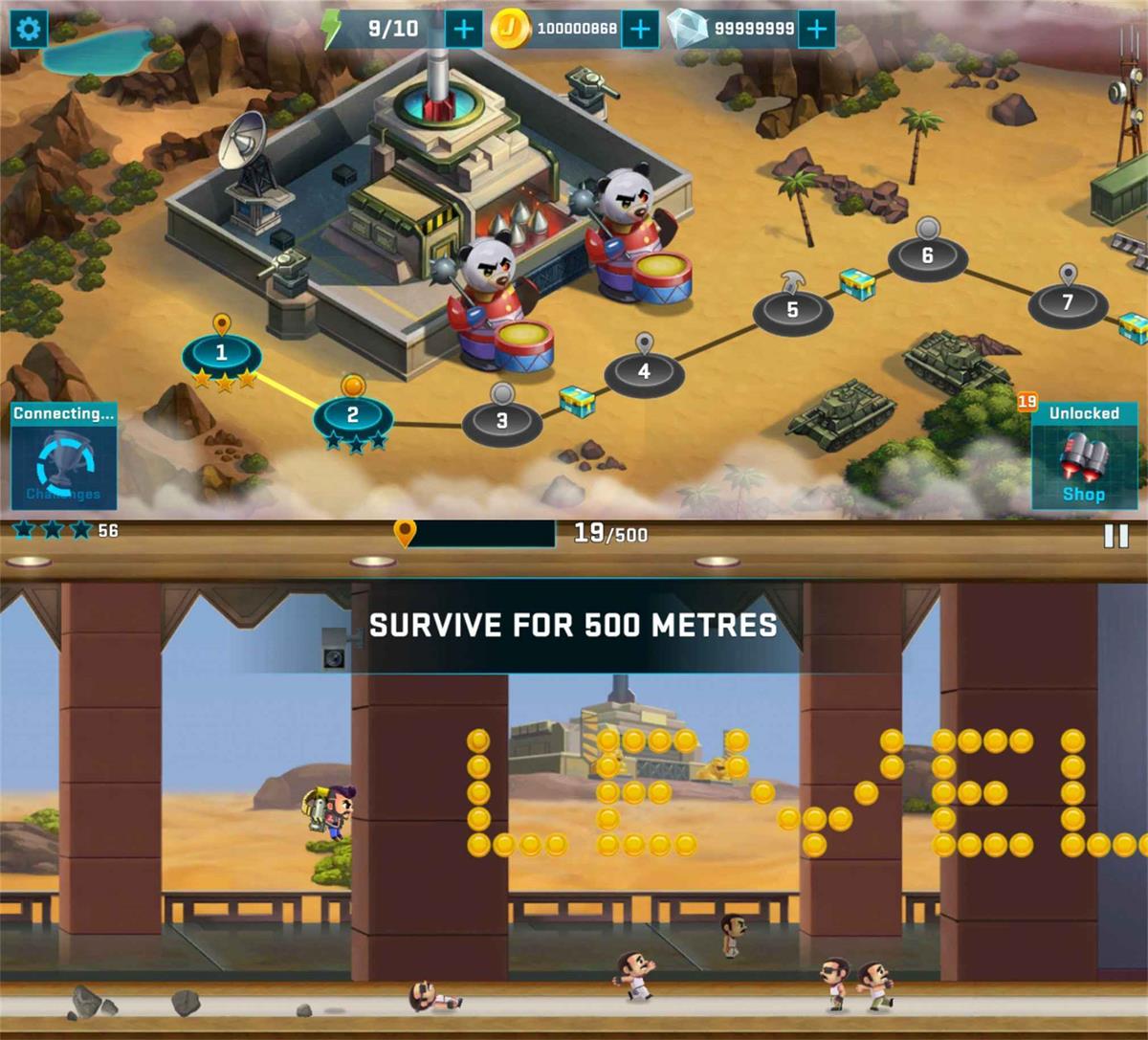 疯狂喷气机是一款全球热门经典闯关游戏。驾驭你的喷气背包手机金钱,躲避导弹、障碍、激光等等阻拦挑战,考验你的技术和反应能力,解锁无限金钱。