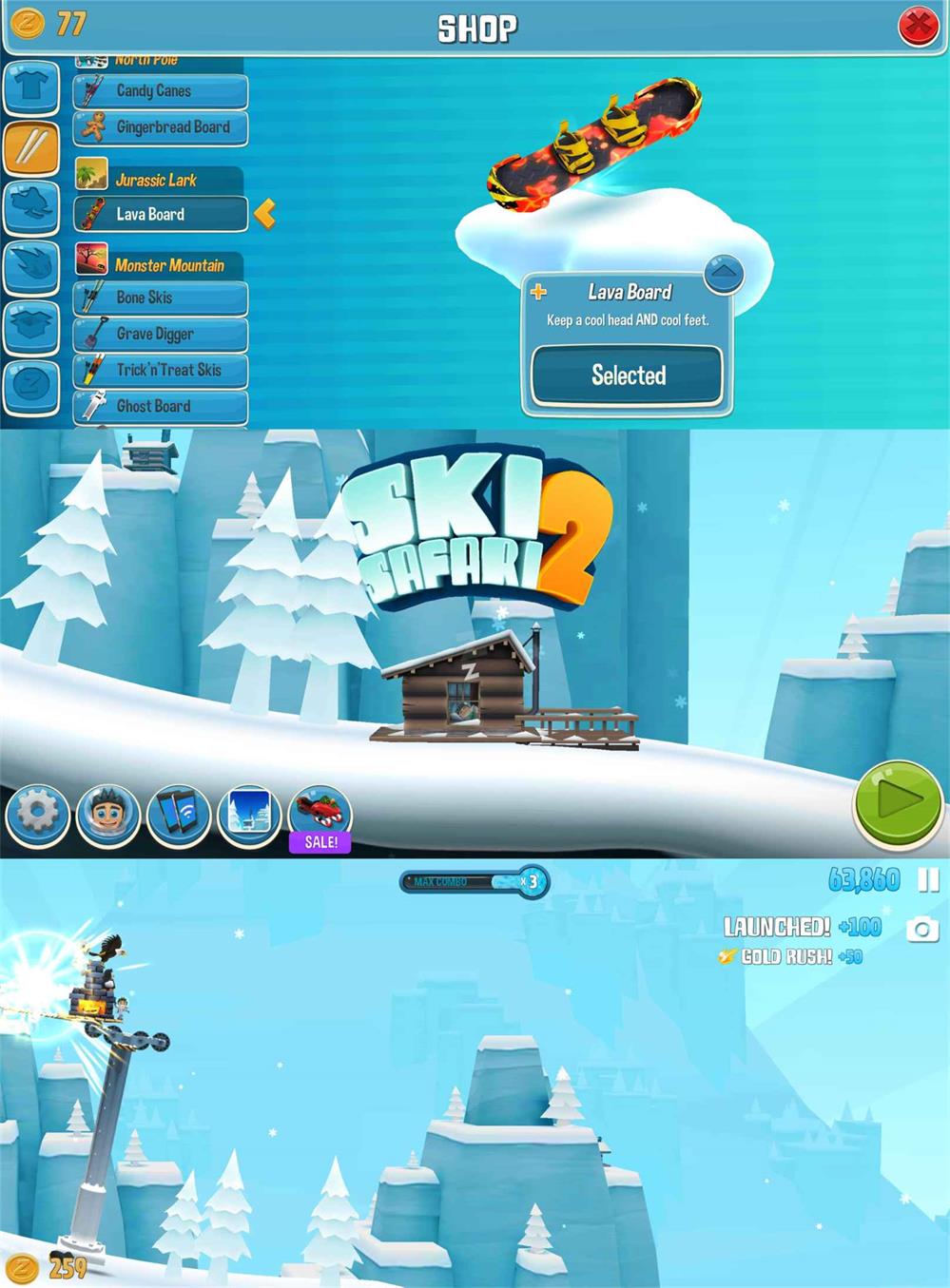 滑雪大冒险2是一款跑酷游戏神作,史上最惊险刺激的另类跑酷游戏,真实雪崩大逃亡。踩上滑雪板,夺命竞速大战就此拉开序幕。皑皑雪山,蔚蓝天空,冲上云霄,穿梭山洞,在惊险刺激的大冒险中体验爽快的滑雪感受吧。(已解锁角色滑板地图)